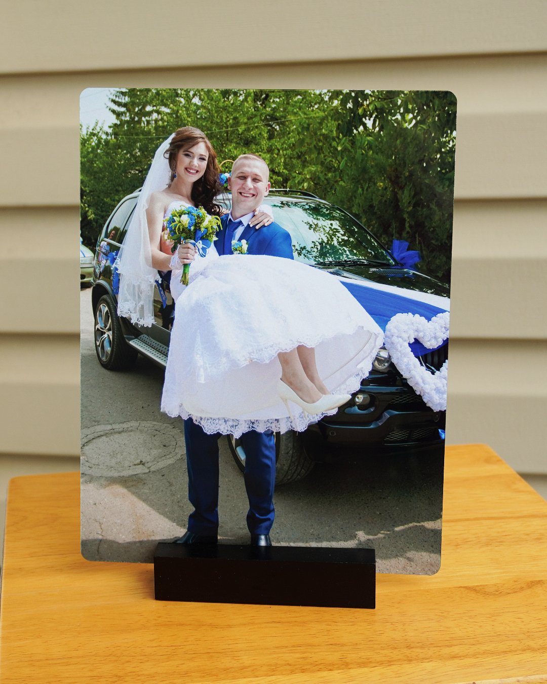 Custom Metal Photo Print with Black Wood Stand
